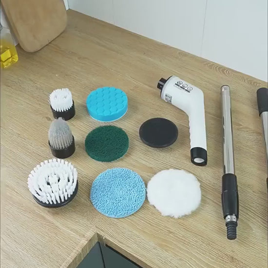 Cepillo eléctrico de Limpieza Inalámbrico con 9 Cabezas con mango ajustable para cocina, baño, Suelo, baldosas, coche, etc.